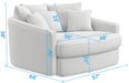 Matty is a large scaled Round Accent Cuddle Chaise and provides three back pillows and three accent pillows to form your perfect seat. Easily comfortable for two, this eclectic piece is available in your choice of three colors: Ebony, White or Pewter.