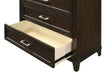 • Spacious Storage: The Merlot 5 Drawer Chest features five storage drawers, providing ample space for organizing clothes, linens, and other essentials, making it a practical addition to any bedroom.