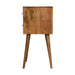 - Features: mini, solid wood, mango wood, oak-ish, carved, cube design, shiny brass knobs, nordic, bedside, bedroom, 2 drawers