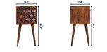 - Mini Cube Carved 2 Drawer Nightstand - This beautifully designed nightstand is constructed from 100% solid mango wood and has. It features 2 small cube carved drawers giving the piece extra character and dimension. It has 4 Scandinavian-style legs to modernize your home and can be fitted in tight compact spaces to go in any type of home interior.