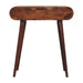 - Mini Round Chestnut Fold Vanity - Add this mini dressing table to your bedroom. Constructed from 100% solid mango wood in a chestnut finish with 1 drawer it features Nordic-style legs, a foldable mirror, and storage compartments for storing any bits and pieces such as jewellery and makeup. This is a lovely and versatile piece that will complement any room beautifully. This petite product is a part of Recession Collection.