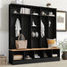 Wide Design Hall Tree With Storage Bench, Minimalist Shoe Cabinet With Cube Storage & Shelves, Multifunctional Coat Rack With 8 Hooks For Entryways, Mudroom - Black