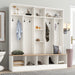 Wide Design Hall Tree With Storage Bench, Minimalist Shoe Cabinet With Cube Storage & Shelves, Multifunctional Coat Rack With 8 Hooks For Entryways, Mudroom - White