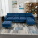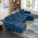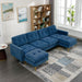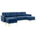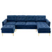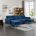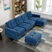 Elegant Convertible L - Shape Sectional Sofa Couch With Movable Ottoman, Velvet Upholstery - Blue