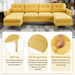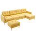 Modern Velvet L - Shape Convertible Sectional Sofa With Movable Ottoman - Yellow