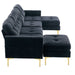 Elegant Velvet L - Shape Convertible Sectional Sofa With Movable Ottoman - Black