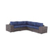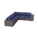 Rattan Wicker 4 Person Seating Group With Cushions Stylish & Comfortable Outdoor Lounge Set - Brown / Navy Blue