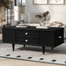 Modern Rectangle Coffee Table With Four Drawers, Wood Coffee Table With Metal Handles And Four Solid Wood Legs For Living Room - Black