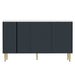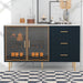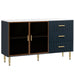 Modern Sideboard Buffet Cabinet Marble Sticker Tabletop And Amber-Yellow Tempered Glass Doors With Gold Metal Legs & Handles - Navy Blue