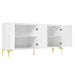 Modern Wood Sideboard Cabinet With Carved Door Panels, Adjustable Shelves, And Sturdy Metal Legs - White