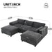 Modular Sectional With Storage Pockets, 5 Seat U Shaped Couch Set With Pillows Free Combination Modern Cloud Sofa With 2 Movable Ottoman - Dark Gray