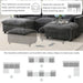 • Ample Storage Space: This sectional sofa comes equipped with two storage bags on either side, providing convenient storage for items such as remote controls and magazines. This feature helps maintain a tidy and organized living room environment.