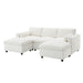 Modular Sectional With Storage Pockets, 5 Seat U Shaped Couch Set With Pillows Free Combination Modern Cloud Sofa With 2 Movable Ottoman - White