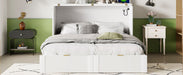 Full Size Murphy Bed With Drawer And A Set Of Sockets & USB Ports, Pulley Structure Design - White