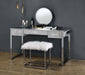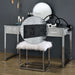 Make getting ready for a night out on the town fun with the Van chrome vanity set. From the beautifully faux crock textured case to the sturdy shiny chrome base make this a statement piece. The three ample drawers have enough room for beauty tools and supplies. The built-in outlet and USB ports come in hand