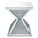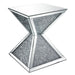 - Features: Mirrored Top, Geometric Base w/Faux Diamonds Inlay & Clear Glass