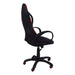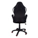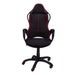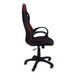 - Design and Material: This gaming-style office chair features a high-back design with fixed, rounded armrests. It is crafted from a polyester-blend fabric in black with striking red accents, providing a modern and contemporary look.