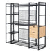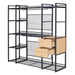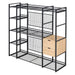 Maximized Space: The open-style clothing rack maximizes closet space with its hanging rails and metal shelves, offering ample room for clothing and accessories.