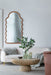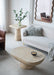 • Modern and Organic Design: This coffee table features a long oval top, a rounded pedestal base, and a bold colorway, combining modern and organic motifs.