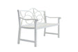 Outdoor Garden Patio Bench With Backrest And Armrest, Slatted Seat For Park, Yard & Porch, Balcony, Accommodates 2 - 3 People - White