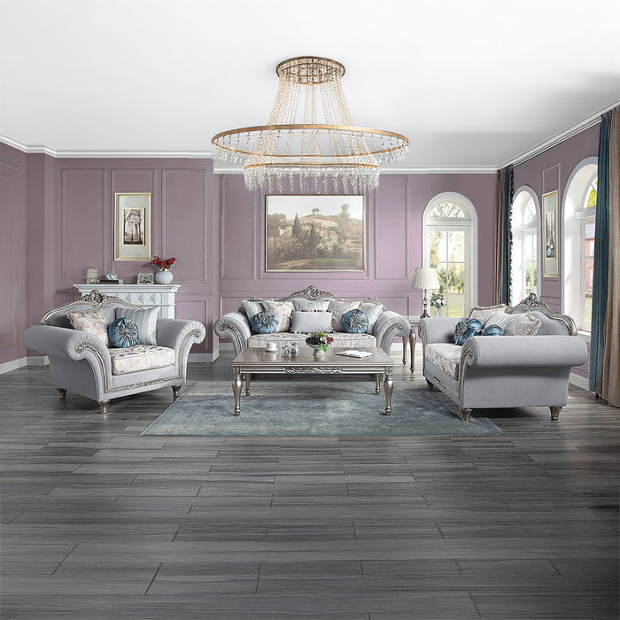 Pelumi - Chair With 3 Pillows - Light Gray Linen & Platinum