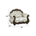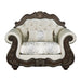 Pierce collection sofa set brings timeless elegance to your living space with its beige fabric and cherry finish. The set includes tight back and loose seat cushions with pocket coil construction for ultimate comfort. A wooden inner frame ensures durability, while button tufting and floral trim apron and legs add a touch of sophistication. Complete with accent pillows and a matching wooden tabletop, this set perfectly blends classic charm with modern comfort.