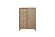 - Design and Finish: The bedroom set features a sand finish with a casual transitional design, blending traditional and contemporary styles for a versatile look.