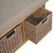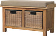 - Artisan Furniture Solid Wood Rattan Basket Linen Bench - This beauty has been constructed from 100% solid mango wood in an oak-ish finish, it has a soft and comfy linen seat pad and 2 rattan baskets that are removable, perfect for storing any bits and pieces you want to be kept out of sight. A lovely neat addition to your hallway.