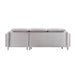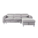 The Reyes sectional with sleeper is a fantastic example of contemporary design. Not only does this stylish set feature adjustable headrests, but it also transforms into a pull-out sleeper for overnight guests. The storage chaise offers plenty of space under the seat for throw blankets and pillows, and the safety hinge and pull loop makes the lifting and closing the storage space easy and convenient. Upholstered in smooth beige nubuck and supported by metal tapered legs, Reyes also features tight back and seat cushions which keeps your living area looking neat and fresh.