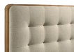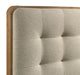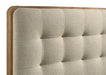 Bring countryside charm to your bedroom with this mid-century-inspired bed, expertly crafted from pine, engineered wood, and walnut veneer for durability and style. The upholstered headboard features thick padding and square tufting for a touch of elegance and comfort, while the sleek, low-profile footboard completes the refined silhouette. Rounded corners and tapered legs highlight the retro-modern design, and its elevated frame adds a clean, airy look. Perfect for creating a serene and stylish bedroom retreat.