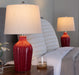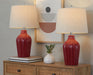 Rockwell - Contemporary Table Lamp (Set of 2) - Glossy Brick Red / Polished Nickel / Natural