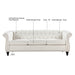 84.65" Rolled Arm Chesterfield 3 Seater Sofa - White