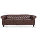 Rolled Arm Chesterfield Three Seater Sofa - Brown