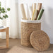 Round Tall Water Hyacinth Woven Wicker Laundry Hamper With Lid For Clothes Canvas Toys And Book Storage With Removable Liner - Natural / Light Brown