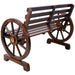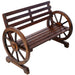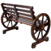 Rustic Country 2 Person Wooden Wagon Wheel Bench With Slatted Seat And Backrest - Brown