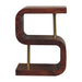 - Artisan Furniture Solid Wood S-curve Brass Bedside - This uniquely designed end table has been constructed from 100% solid mango wood in a chestnut finish. The divided design allows you to place or display items on the top middle or bottom shelf. It has 2 brass bars dividing the piece and giving it extra character. It can be used in the living room or hallway and paired with different styles of furniture in the home.