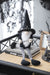 Sitting Gnome With Broomstick & Long Legs, For Halloween Decor - Black White