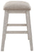 This upholstered stool invites you to raise the bar on small space living. An inspired choice for coastal chic or modern farmhouse settings, this comfortably cushioned stool sports a grayish white finish with rub-through effect for timeworn appeal.