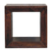 - Solis Open California Walnut Side Table - A bold yet versatile statement piece, this open cube side table is handcrafted from 100% Solid Mango Wood in a rich California Walnut finish. Its clean lines and sleek silhouette offer a modern aesthetic while providing a multifunctional storage solution for books, decor, or everyday essentials. Whether used as a standalone accent, mounted on a wall for a floating effect, or styled as a lamp stand, this piece adapts effortlessly to various interiors. Sturdy, sustainable, and timeless, it combines practicality with artisanal craftsmanship, making it a refined addition to any home.