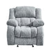 - Zaftig Fabric: Upholstered in luxurious zaftig fabric, the recliner offers a plush seating experience with a soft and inviting texture.