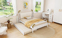 Queen Size Storage Platform Bed, With 2 Big Drawers, Twin Long Size Trundle - White