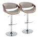 Symphony - Mid-Century Modern Adjustable Barstool With Swivel With Rounded T Footrest (Set of 2) - Chrome / Walnut / Cream