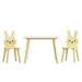 - Adorable Bunny-Themed Design: Features two playful bunny-shaped chairs that create a fun and inviting space for reading, drawing, and snack time.