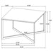 An attractive square shape begins the design path of a glam-inspired table toned down with a hint of industrial style. Turn a casual or semi-formal living room or family room into a gallery of architectural and artisan design. Start with a coffee table featuring a bold finish metal frame in a crisscross shape. A chic marble top offers a blend of white tones and gray touches, versatile and decadent. This cocktail table features straight edges and a dissected-angle design adding optical energy.