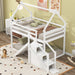 Twin Over Twin House Loft Or Bunk Bed With Slide And Staircase - White