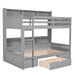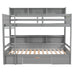 Twin Size Bunk Bed With Built-In Shelves Beside Both Upper And Down Bed And Storage Drawer - Gray