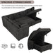 U-Shaped Sectional Sofa Pull Out Sofa Bed With Two USB Ports, Two Power Sockets, Three Back Pillows And A Storage Chaise For Living Room - Black