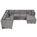 U-Shaped Sectional Sofa Pull Out Sofa Bed With Two USB Ports, Two Power Sockets, Three Back Pillows And A Storage Chaise For Living Room - Light Gray
