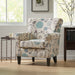 Upholstered Chair With Floral Pattern Design And Solid Wood Legs - Multi Color