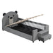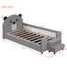 Twin Size Upholstered Daybed With Bear Shaped Headboard, Hydraulic System And Breathable Mesh Fence - Gray